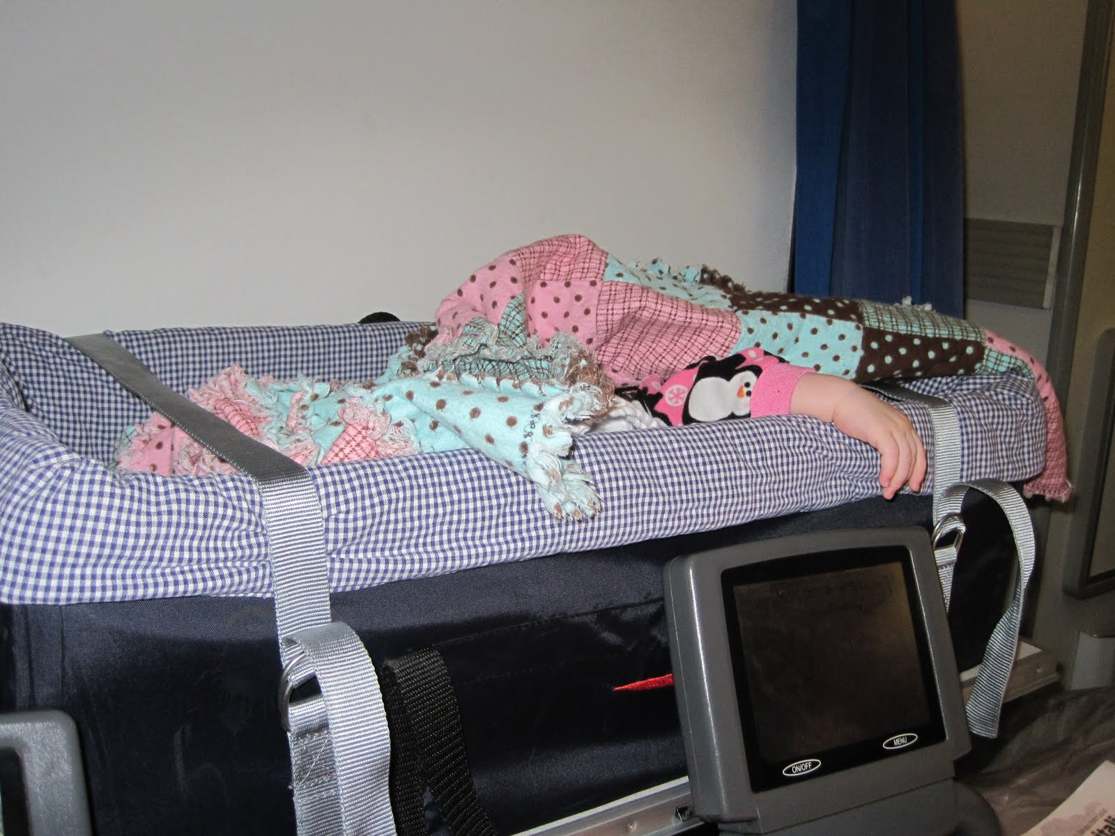 Reece's bed on the long flight, it was really nice for me to have a break from holding her for 9 hours